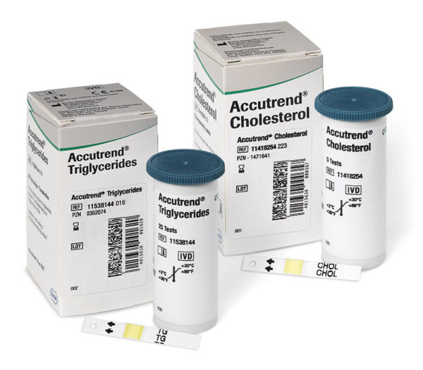 Die Roche Teststreifen sind für das Accutrend Plus geeignet und liefern genaue Ergebnisse bei der Bestimmung von Cholesterin und Triglyzeriden.
