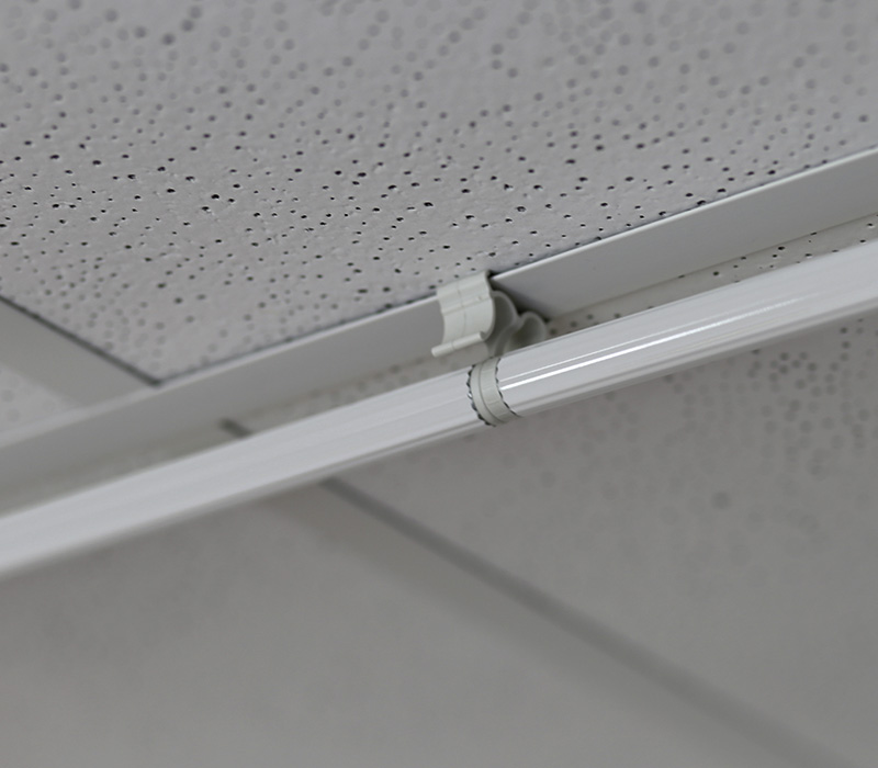Die ropimex DIVIrail Vorhangschiene ist ideal zur Befestigung an Odenwalddecken und bestehen aus hochwertigen, weißen pulverbeschichteten Riffelrundrohren.