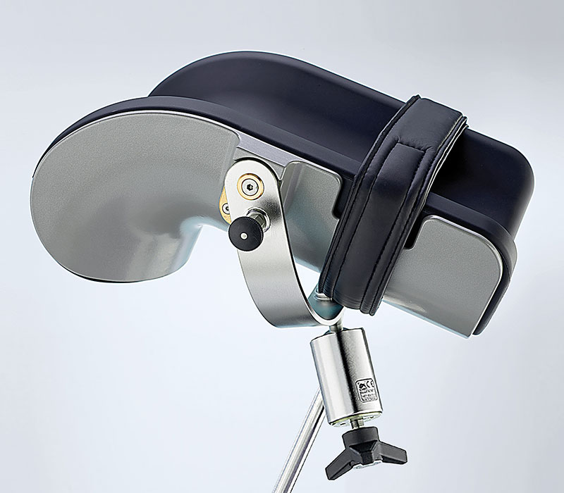 Das Komfortkugelgelenk ermöglicht eine stufenlose Verstellung der frei beweglichen Beinlagerungsschale, die bei Bedarf arretiert werden kann. Die Aluschale ist mit einem abnehmbaren viskoelastischen Schaumpolster ausgestattet, das optimalen Patientenkomfort bietet und eine gleichmäßige Druckverteilung gewährleistet.