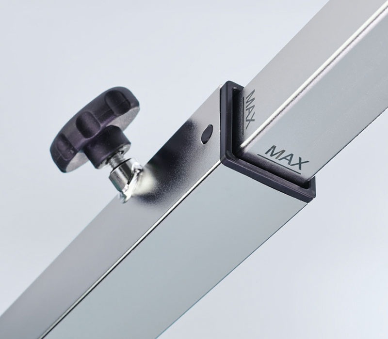 - Formschlüssige Doppelgelenke zum Einschwenken und zur Höhenverstellung