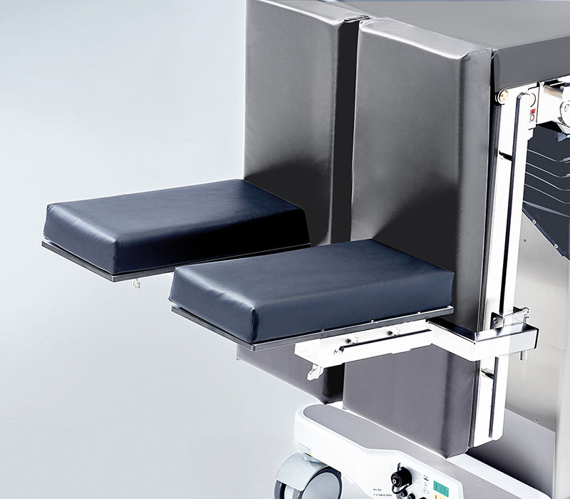Die linke und rechte Platte befinden sich auf Gleitschienen und sind auch unter Belastung leicht um je 125 mm nach außen verschiebbar. Diese Flexibilität ermöglicht eine individuelle Anpassung der Plattenposition während des Eingriffs und gewährleistet eine optimale Patientenlagerung bei verschiedenen operativen Anforderungen.