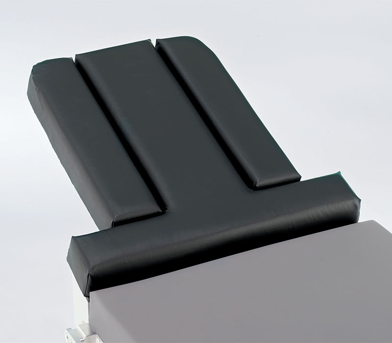 Zudem gibt es drei Positionierungsmöglichkeiten für die seitliche Körperstütze an beiden Seiten der Schulterplatte, einschließlich einer Seitenstütze 101.0612.0. Die Polsterauflagen aus viskoelastischem Schaum mit elektrisch leitfähigem Bezugsstoff gewährleisten sowohl Komfort als auch Sicherheit für den Patienten.