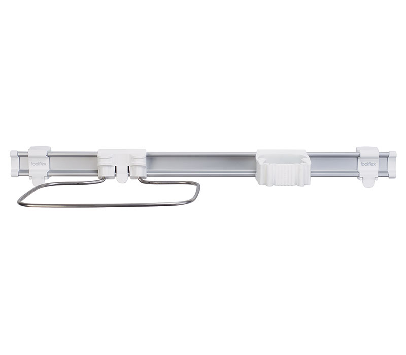 Die Schiene der Wandhalterung wird horizontal befestigt und ist mit einer Haltevorrichtung für die Spenderbox sowie einem Moppstiel-Halter ausgestattet. Der Moppstiel-Halter verfügt über ein Click-System, welches die Handhabung noch einfacher gestaltet. Zur Befestigung der Schiene an der Wand ist das benötigte Montagezubehör bereits im Lieferumfang enthalten.