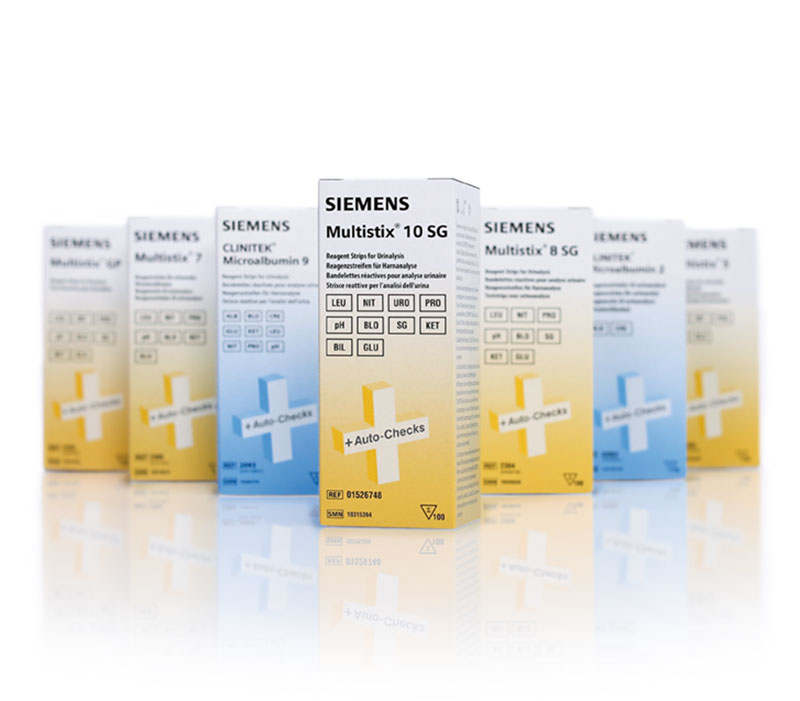 Die Siemens Teststreifen bedienen ein Full-Service-Programm sowohl für die visuelle als auch die instrumentale Auswertung. Verschiedenen Ausführungen sind erhältlich: