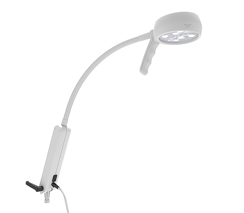 Die Sim.LED 250 steht wahlweise als Decken- oder Wandmodell sowie als Stativmodell mit fixer oder verstellbarer Höhe zur Verfügung. Dank des variablen Montagesystems kann die Sim.LED 250 in der PIN-Version mit einem entsprechenden Adapter auf Normschienen oder einem Wandhalter sowie an Deckenversorgungseinheiten (DVE-Adapter – auf Anfrage) installiert werden.
