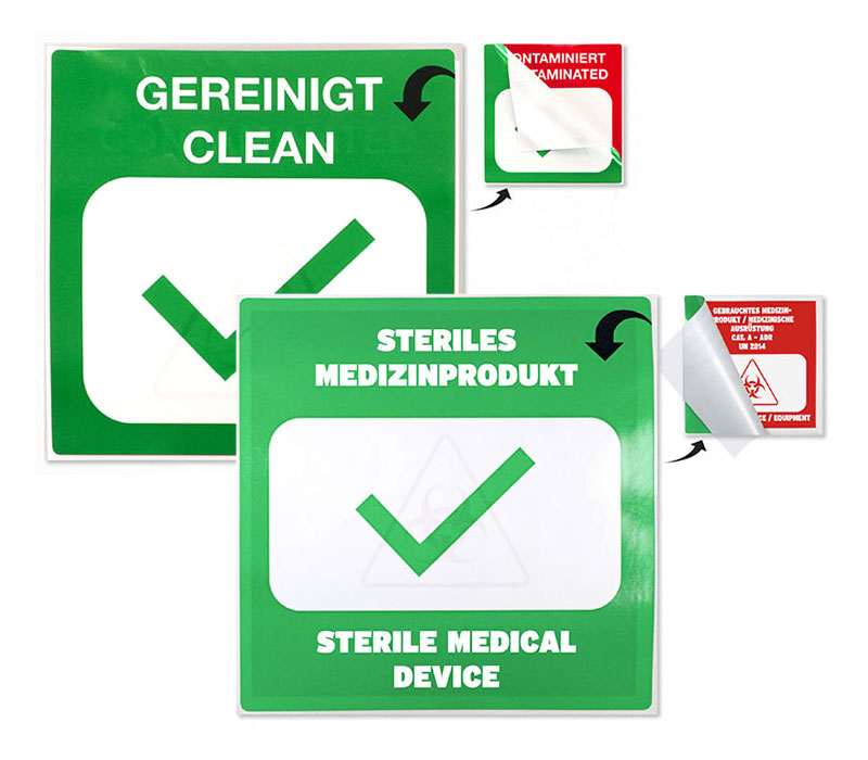 Beim steriCLIN Status Label handelt es sich um 2-Schicht-Etiketten zur farblichen Kennzeichnung von gereinigten (grün) und gebrauchten (rot) Medizinprodukten und Instrumenten.