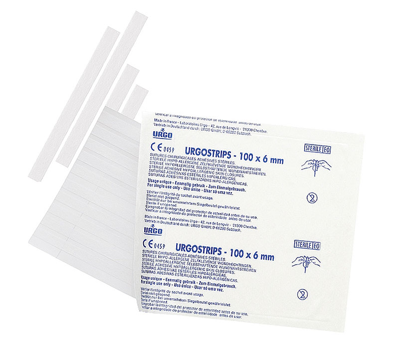Urgo Urgostrips sind sterile Wundnahtstreifen aus weißem Polyester-Vlies für die Behandlung postoperativer und oberflächlicher Wunden, wie z.B. kleine Platzwunden.