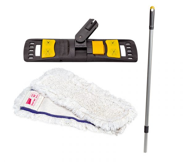Das Vermop Startpaket Bodenpflege mit ergonomischem Wischmop aus korrosionsbeständigem Aluminium dient zur professionellen Reinigung in Praxis und Klinik.