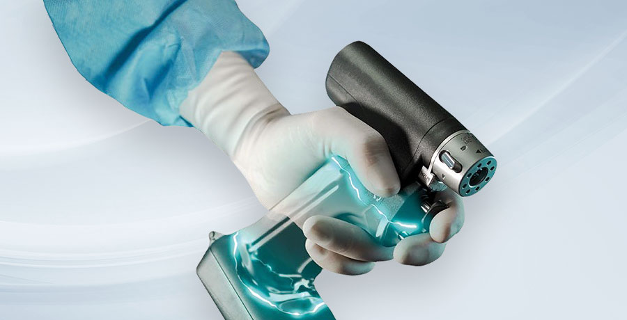 DePuy Synthes UNIUM Modular-Handstück ist das Herzstück eines modularen, vielseitigen Werkzeugsystems zum Bohren, Sägen, Fräsen, Schrauben, Schneiden und Verdrahten in der Chirurgie.